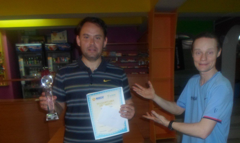 В титульном матче сошлись Денис Валетов и Талгат Нарембаев. И снова очень напряжённый и зрелищный поединок. Но всё-таки Денис – это Денис! Поэтому 7/5 в его пользу. В матче за третье место Тимур Куренков обыграл автора этих строк.