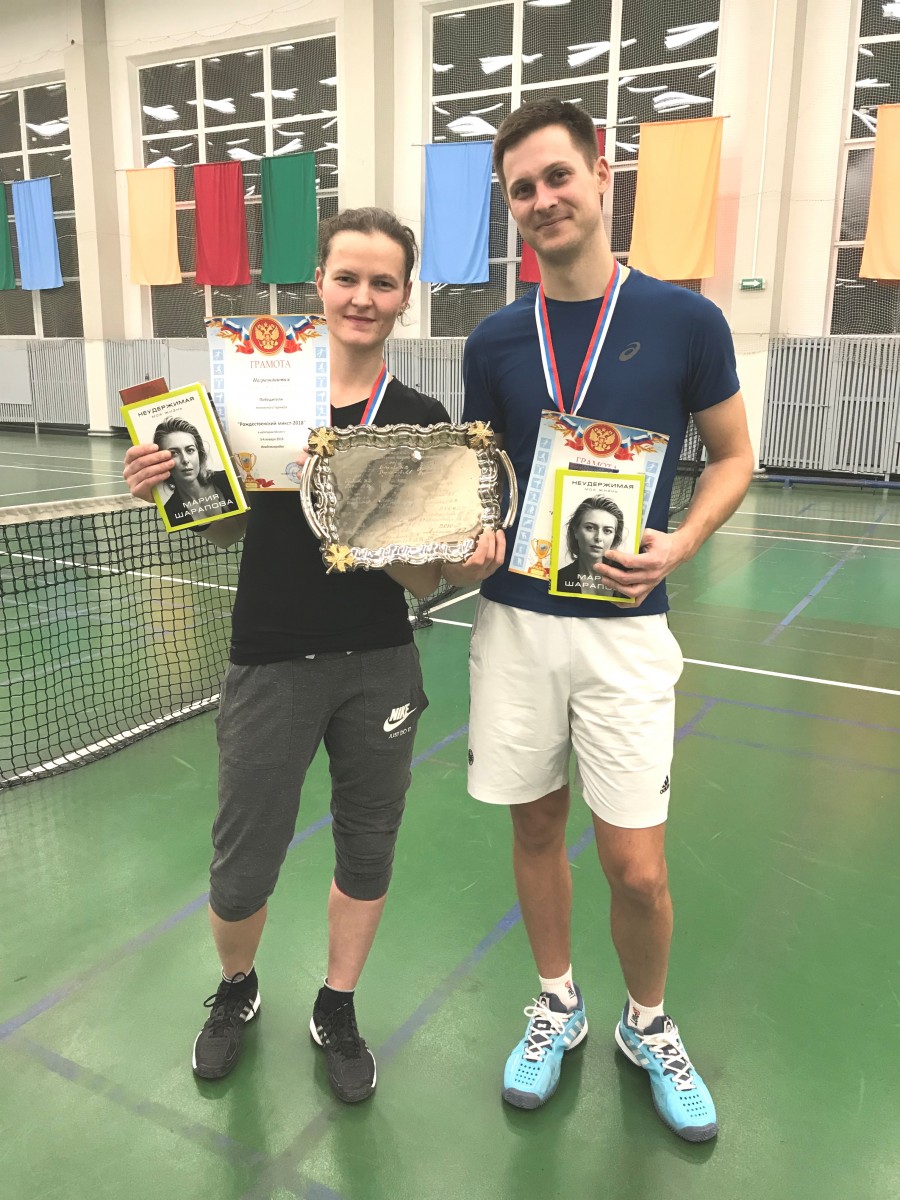 Иллюстрация отчета РОЖДЕСТВЕНСКИЙ МИКСТ 2–3 января 2018 Новосибирск, Россия Категория: Masters Смешанный парный любительский разряд Победители: Стрёхлетова Ольга (Новосибирск) Шенфиль Алексей (Новосибирск) Список участников # Игрок Очков за турнир 1 Стрёхлетова Ольга (Новосибирск) Шенфиль Алексей (Новосибирск) 480 2 Венедиктова Вера (Новосибирск) Плотников Сергей (Новосибирск) 360 3 Дедух Анастасия (Новосибирск) Волков Михаил (Новосибирск) 240 4 Орлова Анна (Новосибирск) Фаге Алексей (Новосибирск) 240 5 Семенов Иван (Бердск) Антипова Екатерина (Новосибирск) 160 6 Федорова Нина (Новосибирск) Пупенко Андрей (Новосибирск) 160 7 Новикова Мария (Новосибирск) Мастихин Антон (Новосибирск) 160 8 Бартош Василий (Новосибирск) Мищенко Евгения (Новосибирск) 160 9 Глубокова Юлия (Новосибирск) Мужев Кирилл (Новосибирск) 160 10 Ледовских Наталья (Новосибирск) Шаламов Никита (Новосибирск) 80 11 Белкин Денис (Новосибирск) Риммер Карина (Новосибирск) 80 12 Степнова Александра (Новосибирск) Первухин Андрей (Новосибирск) 40 13 Булдакова Галина (Новосибирск) Косарев Александр (Новокузнецк) 80 Файлы для загрузки Турнирная таблица , 51.77 КБ Фотоальбом